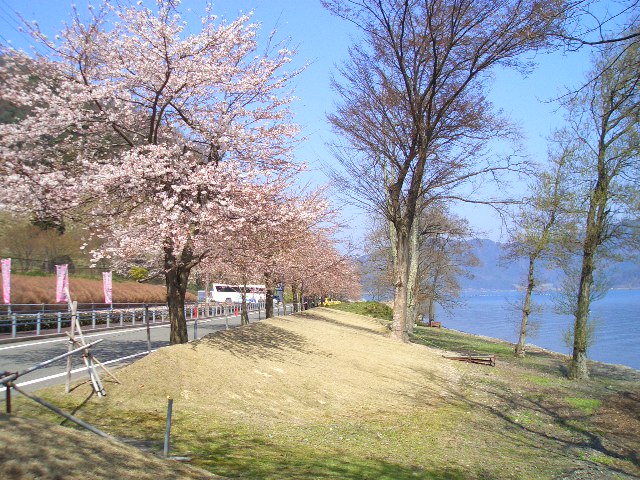 湖岸沿いはずーっと桜のトンネル