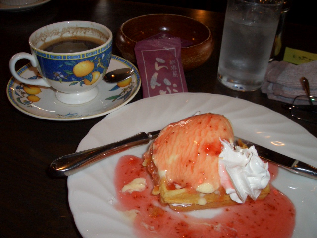 ストロベリーワッフルとコーヒーを注文