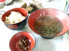 焼き牡蠣食べ放題、牡蠣ごはん、牡蠣汁、牡蠣の佃煮で